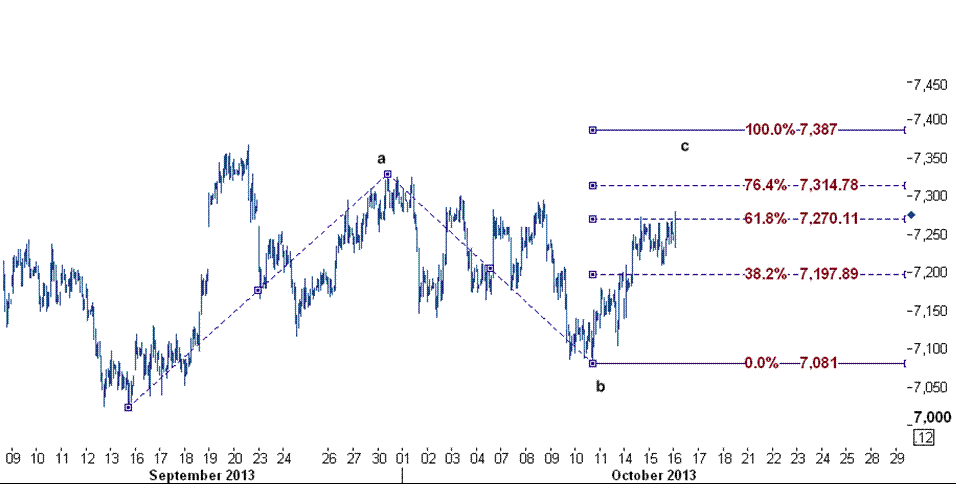 این سطح مقاومت همانطور که در نمودار زیر مشخص است بر روی خط فیبوناچی ۶۱٫۸ درصدی از موج افزایشی c که از سطح ۷۰۸۱ ( پایین ترین سطح ۱۰ اکتبر) آغاز شده قرار گرفته است.