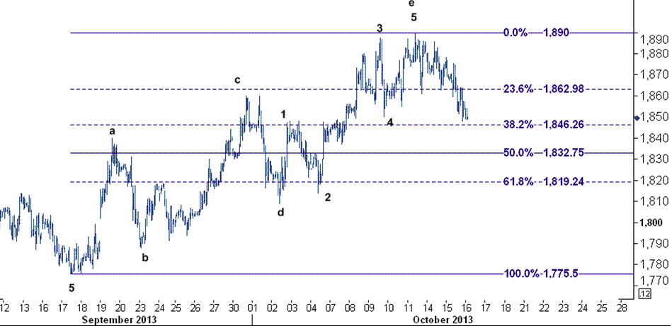 تحلیل و بررسی سطوح فیبوناچی از افزایش ۱۷۷۵٫۵۰ به ۱۸۹۰ نشان می دهد که سطح حمایت بر روی نرخ ۱۸۴۶ ( خط فیبوناچی ۳۸٫۲ درصدی) قرار دارد که فعلا مانع از ریزش موقتی قیمت به سوی خط فیبوناچی ۵۰ درصدی شده است.
