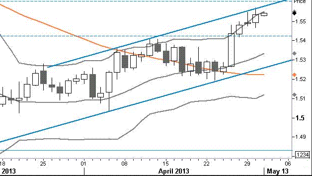 در زوج پوند- دلار نیز سطح حمایت ۱٫۵۴۷۰ در طی چند ساعت گذشته مانع از هر گونه حرکنت اصلاحی و بازگشتی شده است و اکنون به نظر می رسد حرکت اصلاحی آغاز شده از سطح ۱٫۵۵۴۵ از تب و تاب افتاده است. سطح مقاومت ضعیف بر روی نرخهای ۱٫۵۵۵۰ و ۱٫۵۵۷۲ ( خط میانگین متحرک ۱۰۰ روزه ) قرار دارد و در صورت شکسته شدن، هدف بعدی صعود تا نرخ ۱٫۵۶۰۶ ( سطح فیب ۵۰ درصدی از ۱٫۶۳۸۰ به ۱٫۴۸۳۲ ) خواهد بود.