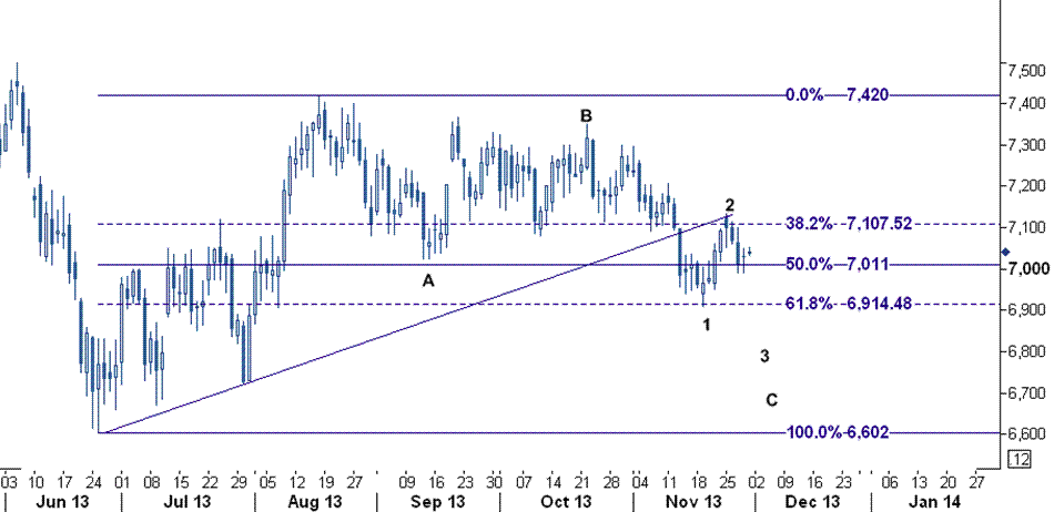 این سطح حمایت همانطور که در نمودار زیر مشخص است بر روی خط فیبوناچی ۵۰ درصدی اصلاحی از حرکت افزایشی ۶۶۰۲ به بالاترین سطح روز ۱۶ اوت یعنی سطح ۷۴۲۰ قرار گرفته است و مقاومت نیز بر روی خط فیبوناچی ۳۸٫۲ درصدی تشکیل شده است.