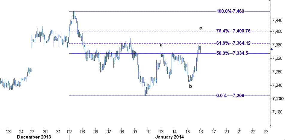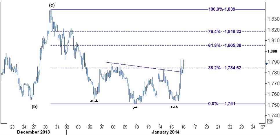 این سطح مقاومت بر روی خط فیبوناچی ۳۸٫۲ درصدی از کاهش ۱۸۳۹ (بالاترین سطح روز ۲۰ دسامبر ۲۰۱۳) به ۱۷۵۱ ( پایین ترین سطح روز ۹ ژانویه) قرار گرفته بود که شکسته شد و مقاومت بعدی بر روی سطح ۱۸۰۵ مشخص می باشد که این سطح بر روی خط فیبوناچی ۶۱٫۸ درصدی مشاهده می شود.
