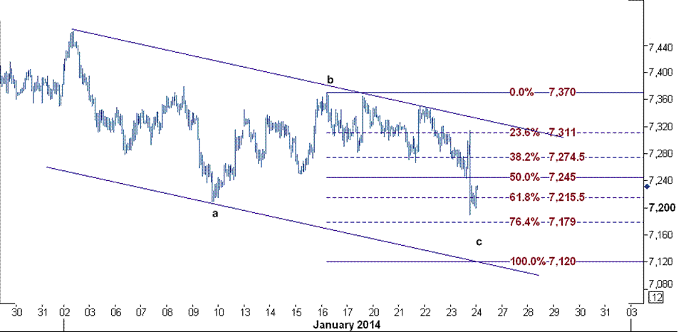 البته از نظر تحلیل تکنیکال به نظر می رسد این موج در حالت زیگزاگ در نوسان است و تنها ممکن است پس از اینکه به زیر سطح ۷۱۷۹ کاهش یافت می تواند به آرامی در مسیر نزولی حرکت کند.