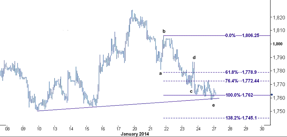 بررسی سطوح فیبوناچی از تکمیل پنج موج در اطراف سطح ۱۷۶۲ (خط فیبوناچی ۱۰۰ درصدی از موج c) خبر می دهند.