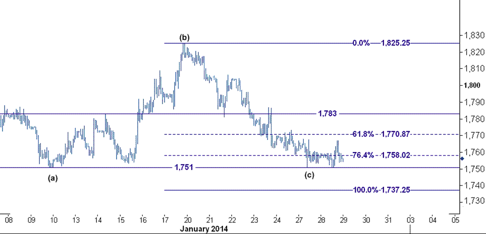 چنین به نظر می رسد که یک کف دو قلو در اطراف سطح ۱۷۵۱ بوجود آمده است و نوسانات قیمت نشان می دهد که این حرکت برگشتی می تواند لااقل تا سطح ۱۷۸۳ افزایش داشته باشد که بالاترین سطح در روز ۱۴ ژانویه می باشد.