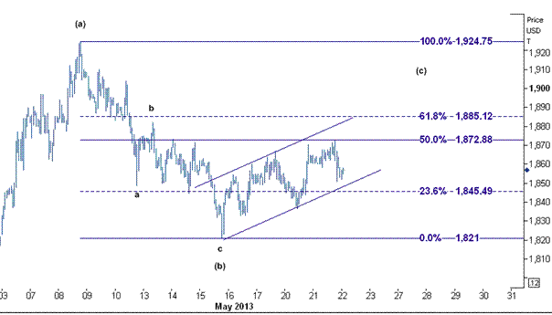 این سطح مقاومت بر روی خط فیب ۵۰ درصدی از کاهش ۱۹۲۴٫۷۵ ( بالاترین سطح روز ۸ مه ) به ۱۸۲۱ ( پایین ترین سطح روز ۱۵ مه ) تشکیل شده است و حرکت اصلاحی و برگشتی که پس از برخورد به سطح مذکور شکل گرفته است بسیار کوتاه خواهد بود و به احتمال زیاد در بالای سطح حمایت ۱۸۴۵ ( بر روی خط فیب ۲۳٫۶ درصدی ) متوقف خواهد شد.