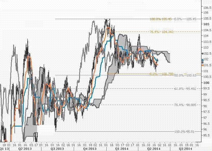 بنابراین همچنان بر این باوریم که در شرایط فعلی حرکت هنوز هم به نفع فروشندگان است بااین حال، فعلاً می بایست در انتظار بود تا پس از یک حرکت اصلاحی به حدود ۱۰۲٫۰۵ تا ۱۰۲٫۲۰ روند نزولی ادامه یابد.