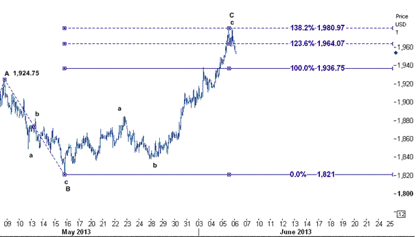 همانگونه که ملاحظه می شود براساس طول موج قبلی A و کف موج B در سطح ۱۸۲۱ ، این موج C دقیقا در سطح ۱۹۸۱ ( سطح فیب ۱۳۸٫۲ درصدی ) به پیک یا سقف خود رسیده است و عمق حرکت نزولی از سطح ۱۹۸۱ تکمیل موج C را تایید کرده است .