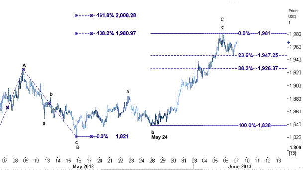 این سطح حمایت بر روی خط فیبوناجی ۲۳٫۶ درصدی از افزایش ۱۸۳۸ ( پایین ترین سطح روز ۲۴ مه ) به سطح ۱۹۸۱ ( بالاترین سطح روز ۵ ژوئن) تشکیل شده است و موقتا از ادامه حرکت نزولی به سوی ۱۹۲۶ ( سطح فیب ۳۸٫۲ درصدی ) جلوگیری کرده است.