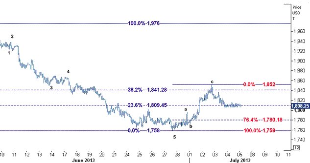 این تکمیل موج برگشتی را عدم توانایی قیمت در عبور از سطح مقاومت ۱۸۴۱ ( سطح فیب ۳۸٫۲ درصدی از ۱۹۷۶ – بالاترین سطح روز ۷ ژوئن – به ۱۷۵۸ ) تایید کرده است.