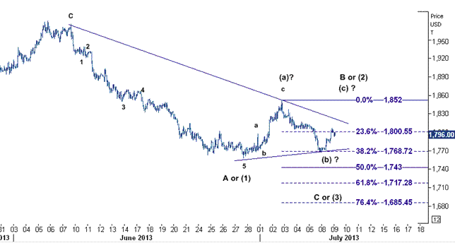 تحلیل و بررسی سطوح فیبوناچی بیانگر آن است که صعود دیروز قیمت پس از برخورد قیمت به سطح حمایت ۱۷۶۹ – سطح فیب ۳۸٫۲ درصدی از موج نزولی C – یا موج نزولی (۳) اتفاق افتاد و تا زمانیکه قیمت آلومینیم پایین خط روند نزولی رسم شده در نوسان است این سطح حمایت همچنان پایدار است.