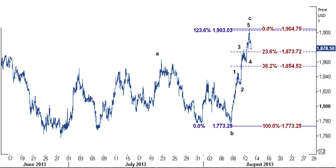 بررسی امواج الیوت تکمیل موج افزایشی اخیر قیمت از سطح ۱۷۵۸ ( پایین ترین سطح روز ۲۷ ژوئن ) را نشان می دهد و به باور ما قیمت آلومینیم تمامی آن چیزی که در این موج بدست آورده بود مجدد پس خواهد داد.