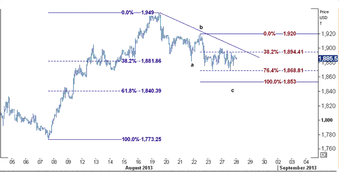 به باور ما موج نزولی قبلی که از سطح ۱۹۴۹ ( بالاترین سطح روز ۱۹ اوت) شروع شده است کماکان به قوت خود باقی است که این هدف را بررسی خط روند نزولی رسم شده از این سطح تایید کرده است.