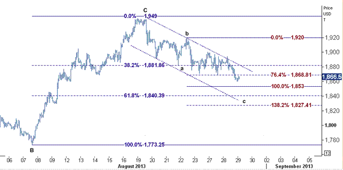 پس از چندین روز نوسان قیمت در اطراف ضلع بالایی تونل، قیمت آلومینیم سرانجام در مسیر کاهشی به سوی ضلع پایینی کانال قرار گرفته است که هدف ۱۸۴۰ ( بر روی خط فیبوناچی ۶۱٫۸ درصدی از افزایش ۱۷۷۳٫۲۵ به ۱۹۴۹ ) را نمایان می سازد.